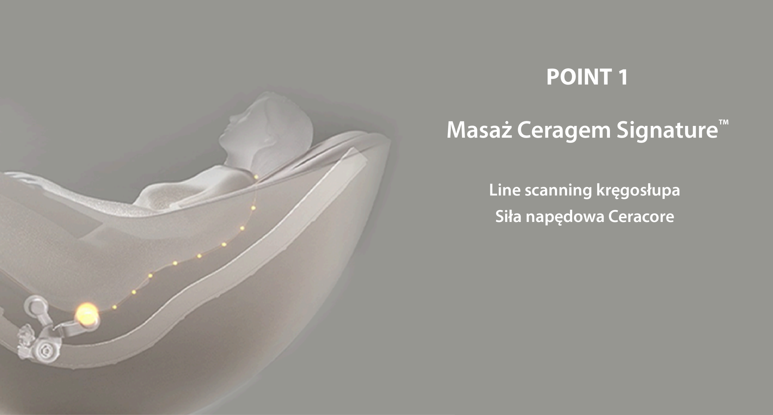 Masaż Ceragem Signature. Line scanning kręgosłupa. Siła napędowa Ceracore.