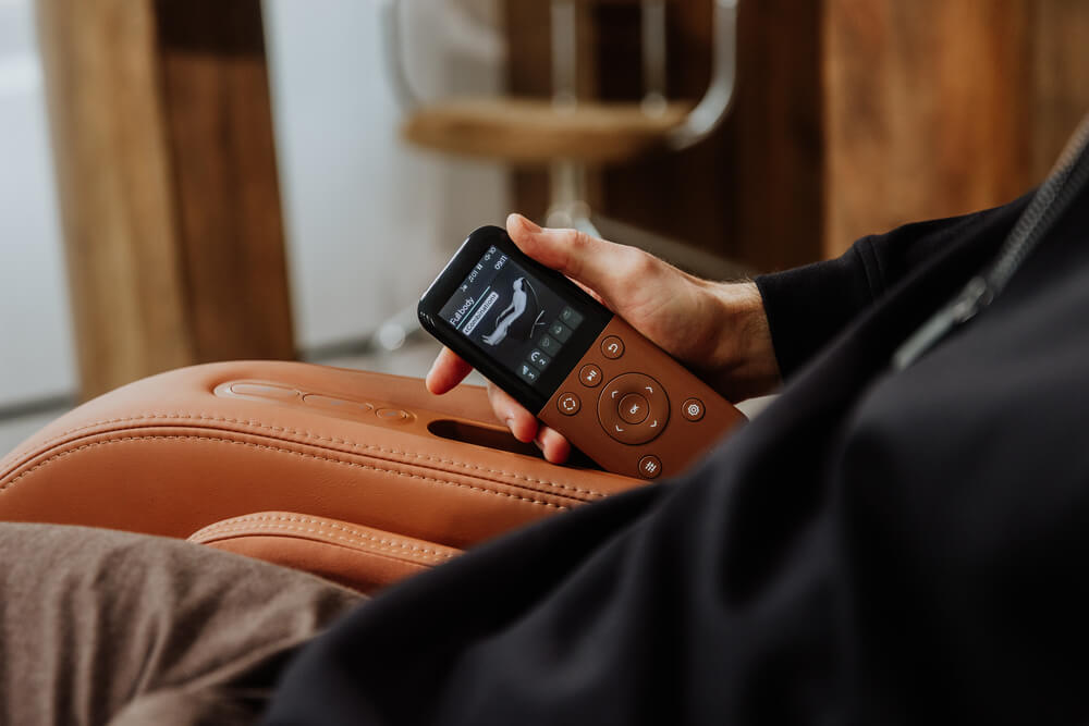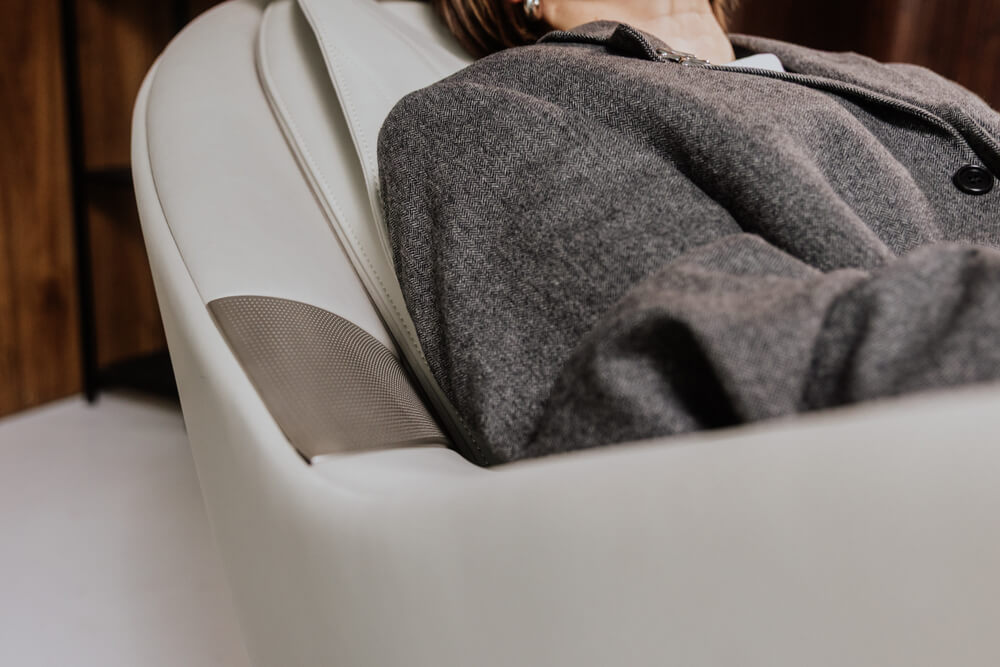 - Pause M6 umożliwia jednym dotknięciem odchylenie oparcia do 150°, a wbudowany podnóżek można unieść do 80°, co pozwala uzyskać komfortową pozycję „zerowej grawitacji” podczas masażu lub odpoczynku.